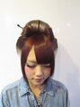 成人式用のカラーとセットです。カラーは内側はブリーチ2回後ホワイトカラーで白に。上はピンクブラウンです。セットは日本髪猫耳バージョンです。色とセットがマッチしてとてもかわいいスタイルです。