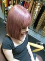 ミディアムボブにカットして、ブリーチしてからミルクティーベージュをON、さらにカラートリックをオリジナルレシピで調合しON、透明感のあるピンクベージュの出来上がりでございます。