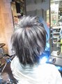 ブリーチ2回してからポイントにアクアブルー、ベースはシルバーグレーで寒色系でまとめてみました♪最後はセットで軽くスジを作って立体感のあるスタイルに仕上げました。