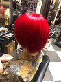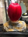 ショートボブのシルエットも相まってリンゴのようなかわいい仕上がりに!色残りしやすい赤ですが比較的落ちやすいカラー剤を使用しているのでカラーチェンジもしやすいです◎