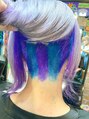刈り上げしててもできるウルフスタイル!ウルフは襟足からインナーカラーが見えるのでより可愛くてておすすめです◎刈り上げ部分はストライプにして個性的に!