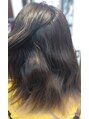 お産を基にクセ毛が強く成り、毛先にブリーチ更に普段縛っていた為癖毛が気になるように成りエアーストレートを掛けにご来店頂きました。特に雨の日などは、まとまりが悪くエアーストレートを掛けて、ご覧のように艶々サラサラでお手入れも楽に成ります。