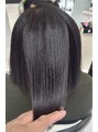 強い癖毛の為かなり爆発的に癖毛が出ており、産後9ヶ月と言う事も有り、少し短くボブスタイルに切りました。ストレート後に少し白髪が気になるので、マニキュアもして頂いたので更に艶々サラサラに成りました。