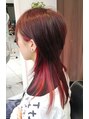 ウルフレイヤーをベースに全体に毛量調整後、カラーは襟足サイドにブリーチを加え、大胆にビビットなレッドを。