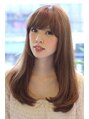 オーダーの多いレイヤースタイルです全体的なフォルムは重ためにして、顔周りのレイヤーで小顔 効果◎前髪は厚めバングで。カラーでもライトベージュにすることで柔らかさをが出ます。