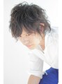 ミディアムレイヤースタイル。ランダムにパーマをかけ無造作に!ツーブロックもOK!爽やかで好感度UP!半乾きの状態で流さないトリートメントとWAXをつけ完成!一分スタイリング!、トラッドジェルでまとめればビジネスシーンにもOK!アシンメトリー