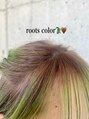 ライムグリーン ルーツカラー ベージュ ガルボヘアー 黄緑