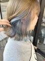 ふわっと透明感のベビーブルーインナーカラーに全体は明るめベージュカラー◎ケアブリーチで全体を明るくしてから色をのせるダブルカラーの施術をおこなっています!カットは結べる長さのミディアムで巻いても可愛いスタイルです☆