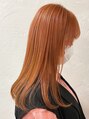 しっかりと発色している太陽カラーのオレンジです◎ベージュてまろやかさがでて優しさ、落ち着きを出しています。元気の出るしっかり高発色のブリーチカラーです○
