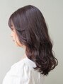 ふわっと明るく発色するラベンダーグレージュです。柔らかさ、透け感ともにたっぷり入った透明感カラーに仕上げています◎顔周りと表面を細かく巻いた可愛いガーリースタイルです♪