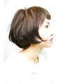 思い切って短めにカットした前髪がポイント!!明るい雰囲気とちょっと個性的な、不思議な雰囲気を感じます♪全体は前上がりのボブの設定、お顔の補正も自在です!