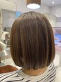 失敗しないミディアムボブはお任せ下さい♪カラー剤もイルミナカラーを使用しているためダメージレベルを極力軽減し透明感溢れる色味に仕上げています。