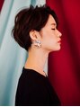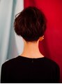 カットはアシンメトリーに、ネープは短めに刈り上げ首回りをスッキリと見せ、スタイルアップ効果◎ゆる巻きウェーブで、大人っぽく軽やかな雰囲気に持っていきます。耳掛けが大人っぽい美シルエットスタイルです