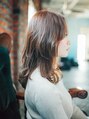 Aラインのミディアムスタイルにハイレイヤーが入りひし形のシルエットにもなる万能スタイルです!!カラーはツヤ感のあるオレンジベージュがベースでハイライトも入っていて巻いたり、風になびくとキレイにスジが出るようになってます。