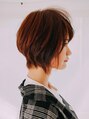 襟足に長さを残した、収まりの良いショートスタイルです。ボーイッシュになりすぎないように丸さをつくり、顔まわりの毛を長めに残しています。襟足は外ハネにすることで全体のバランスとシルエットを綺麗にみせています!