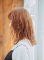 カラーは今が旬のアプリコットオレンジでツヤと柔らかさの出るミディアムスタイルです☆女の子らしいスタイルの中にもラフで飾りすぎないいんきょうが◎毛先と前髪をゆるふわにして動きを出し立体感を出しました。