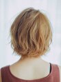 レイヤーが入ったボブショートは重くならず、毛先に動きが出て可愛らしい印象になります。前髪もセンター分けで分けることで垢抜けたいんしょうに。ハイトーンのヘアカラーは柔らかいスモーキーベージュで全体の印象をふんわり見せてくれます!