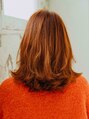 ミディアムレングスにパーマをかけたスタイル!カールはランダムに毛先の動きをつけてカジュアルな印象に!ヘアカラーはオレンジ系の明るめにするとツヤ感も増して秋っぽい仕上がりになります!