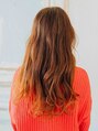 胸下のロングスタイルセンターパートで両サイドはかけているのでスッキリとした印象に。太めのコテで大きなウェーブをつけてくせ毛風のナチュラルなスタイリングです。スタイリング剤は軽めのオイルで艶をプラスするくらいが◎