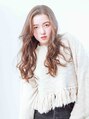 ギャルになりすぎない外国人のような透明感のあるベージュ系カラーです。前髪はセンターパートで大人可愛い印象をつくりました。
