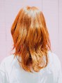前上がりなレングスのミディアムレイヤースタイル。顔まわりにもしっかりレイヤーを入れているので、外ハネにしてもかわいいスタイルになっています。バングも少し広めにとって巻いて眉うえにくる長さに設定しました。