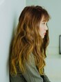 全体的を巻いて動きを出しているカジュアルなロングヘアスタイル!無造作にセットしたバングは柔らかい印象がでていてかわいいです。根元から毛先にかけて明るくなるイエローのツートーンカラーは個性的で目を引く印象的なデザインになっています。
