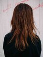 重ためなアウトラインに表面にレイヤーを入れ、エアリー感の出るようなスタイルにしました。バングも同じに波巻きにし、シースルーにすることによって、垢抜けた印象に。カラーリングは、少しグラデーションになるようなお色で染めてあります。