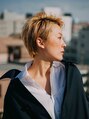 ショートスタイルのカラーは明るめで思いっきりハイトーンカラーにしてインパクト大!サイドを耳にかけてタイトに収めます!