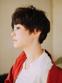 パッツン気味にそろえたバングが印象的なナチュラルマッシュのショートスタイル。バングはあえてカールをつけすぎず、自然におろしてマッシュのラインをいかしています。逆にトップはふんわりとカールをつけてメリハリを!