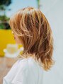 ブリーチをしたハイトーンスタイルは顔周りのレイヤーを短くすることで動きが出て立体感が出ます。前髪をかきあげて夏っぽさと大人っぽさがあるスタイルです。