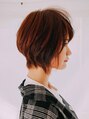 襟足に長さを残した、収まりの良いショートスタイルです。ボーイッシュになりすぎなきように丸さを作り、顔まわりの毛を長めに残しています。