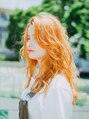 ヘアカラーは夏っぽくオレンジカラーにしています。スタイリングは、太めのコテを使って全体的にウェーブ感が出るように巻いています。前髪をかきあげると大人っぽい雰囲気を出すことができます。