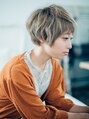 ボーイッシュなショートスタイルで、バングを短く、顔周りの毛を長めに残すことで小顔効果も。色は透明感のあるベージュにすることで軽い印象を与えます。