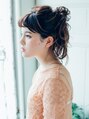 ロングヘアをきっちりさせすぎず、くずしめで、正面から見てもアレンジが見えるようにサイドにアップしました。トップにもボリュームを出して、ルーズな感じに、おくれ毛も出すのがGOOD!!!ハイライトが入っているので立体感がさらに出てかわいいです☆