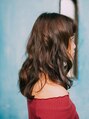 ミディアムパーマスタイル!カールが大きめでしっかりとかかっているのでフワッとしたヘアスタイルになりヘアカラーもトーンが暗めなのでツヤ感も出てさらに髪がキレイに見えます!伸ばしかけの方にとてもオススメなスタイルです!