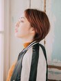 顎くらいのショートグラデーションスタイル。ボリュームの位置を高くしてトップにレイヤーが入ることでふんわりと。カラーは明るめで陽気的な雰囲気のカッパーブラウンに。耳にかけることで顔周りがスッキリヘルシーな女性像に。