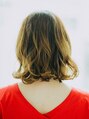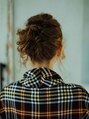 表面の見せるところにウェーブを作り前髪は大人っぽさを出すためにかきあげました。仕上げにオイルを使って艶感を出すことでよりフェミニンな印象に!