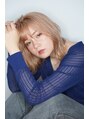 ダブルカラーで、透明感のあるハイトーンのベージュカラーです!カットは、レイヤーを入れて動きをだします。フロントはセンターに分けます。仕上げはウェーブをだしてコテで巻きます。毛先は外ハネにするのがポイントです。