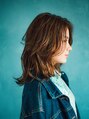 外ハネの重めなミディアムウルフスタイル!!毛先が重く見えないようにレイヤーを入れます。前髪を長くセンターで分けることで、大人っぽい雰囲気にします。ブラウン・ベージュ系のカラーリングで明るさをだします。コテで外巻きにして毛先に動きを出します。