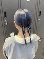 ブリーチ1回~できるブルーブラックカラー!室内だと暗めに見えますが、光に当たると青がしっかりと見えて可愛いです♪♪染めたいけど明るい、派手目な色は抵抗ある、そんな方にもオススメなカラーです!