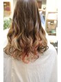 グラデーションカラーやハイライト&ローライトの3Dカラーならストレートと巻き髪で表情が一変。ON&OFF自由自在。ストレートなら落ち着いた感じのナチュラルスタイル♪巻き髪ならトーンアップで動きがあるモテ愛されスタイル♪