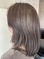 ほんのりラベンダーをプラスしたセピアブラウンで、やわらかく上品な印象に。ストレートボブですが、やや丸みのあるシルエットでどの服装にも合うボブスタイルです。