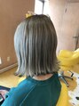 ハイトーンのブロンドカラーです!ブリーチでしっかりとベースを明るくして黄色味を消すようにオンカラーしてます。ムラサキシャンプー等を使うと黄色味の少ない綺麗なブロンドを長く楽しむことができます^ ^