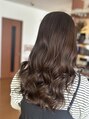 大人グレージュで上品に赤味を抑えてます♪くすみ過ぎずにカラーすることで艶がのこり素敵な色になります。カットはレイヤーを入れて巻きやすくしてます♪32~38ミリのカールアイロンで緩く巻くのがオススメです。