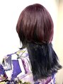 赤みのある紫と青みのある紫のインナーカラースタイルです全頭ブリーチすることにより、ふたつのお色を楽しむことができますロングウルフスタイルなのでインナーカラーがより見えてかわいいです!