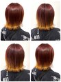 エヴァンゲリオンの2号機をイメージして染めてます推し活にもおすすめです!毛先の2、3回繰り返したブリーチ毛を生かしたカラーになります