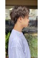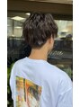 カットはサイドと襟足はツーブロックをいれてます(^^)かぶせている髪の毛はだんを入れず毛量を減らしてます(^^)カラーはナチュラルサファイアブラウンで染めてます(^^)