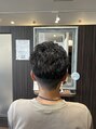 サイドツーブロスタイル。パーマはワックスとジェルの組み合わせで少し濡らしてつけてもらうだけで決まります。セットが簡単です。