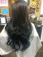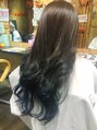 下の部分はホワイトに近いぐらいにブリーチをしました!そこにダークブルーのカラーをいれました!!色落ちも楽しめるグラデーションカラーです☆