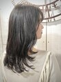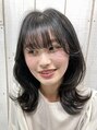 シンプルな外ハネと表面の軽いレイヤーで大人っぽいくびれスタイルに。シースルーバングとサイドバングでトレンド感もプラス。カラーは暗めでも透明感が出るイルミナカラーで重くない暗髪に。